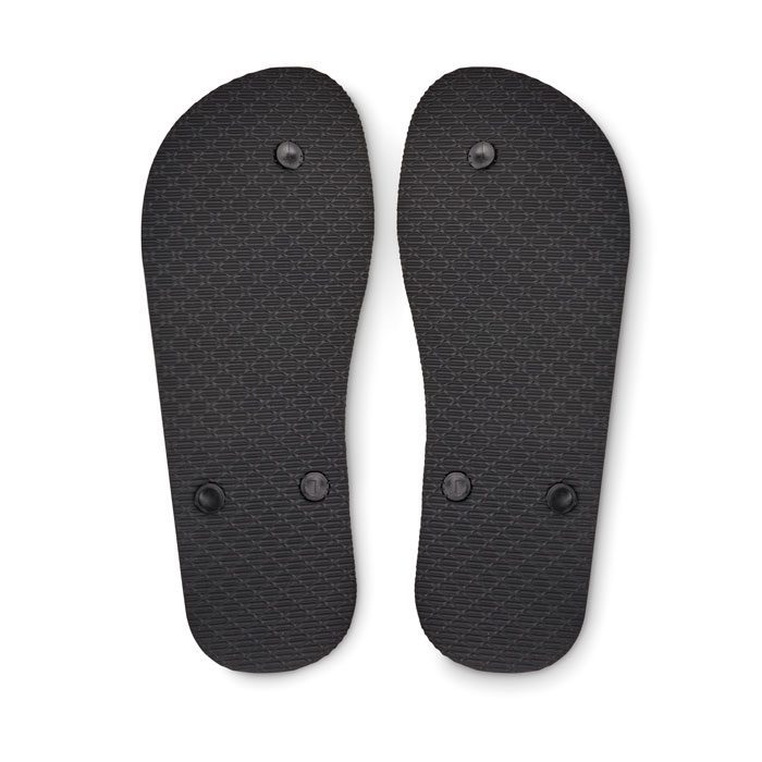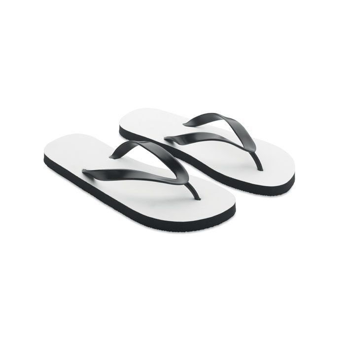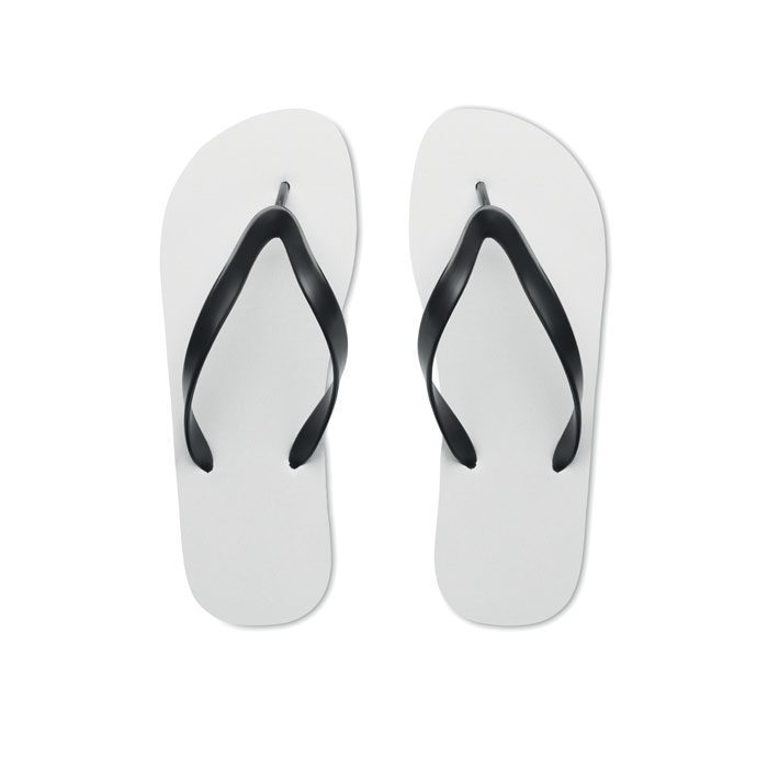 Klapki plażowe do sublimacji z paskami z PVC. Podeszwa wykonana z gumy z wierzchnią tkaniną poliestrową. Rozmiar 38-41. Przedmiot może być zamówiony wyłącznie z nadrukiem.