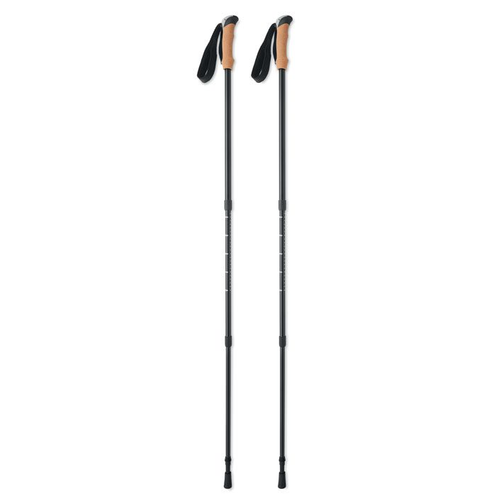 W pełni regulowane aluminiowe kijki do nordic walking z korkowymi uchwytami, gumowymi końcówkami i koszyczkami na błoto. Zapakowane w pokrowiec RPET ripstop. W pełni regulowane: 65 cm do 135 cm.
